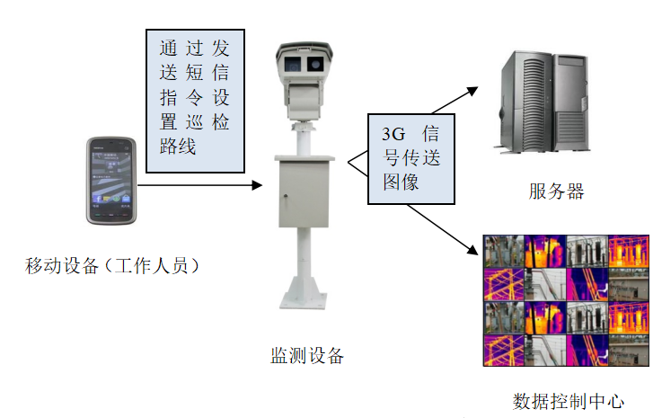 (1)变电站红外热成像及可见光视频监控。 (2)红外及可见光图像存储、历史数据查找、缺陷分析、打印缺陷报告、报警、远程控制等。 |