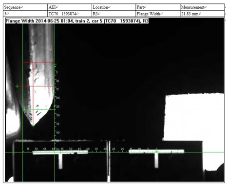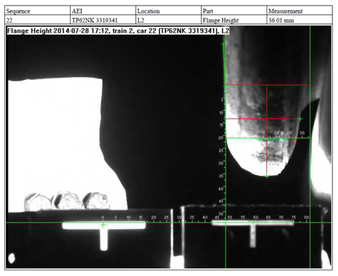 (1)自动检测货车车轮轮缘厚度、轮缘高度、轮缘垂直磨耗、车轮直径、轮对内侧距、踏面圆周磨耗、轮辋厚度;