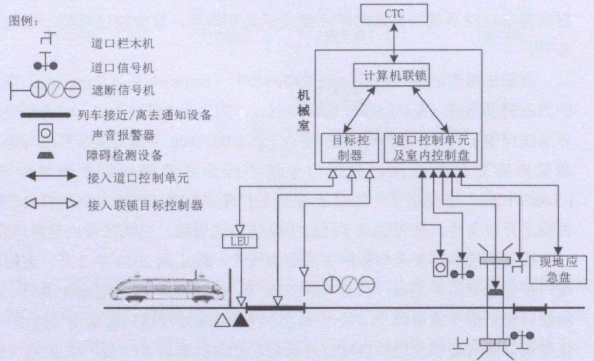 控制方式分为三种:区间道口控制、与主信号机联锁的站内道口控制和与主信号机防护的站内道口控制。下面以与主信号机联锁的站内道口控制为例介绍。